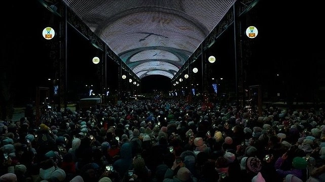 Размеры медиаэкрана составляют 11 метров в высоту и 100 метров в длину (в Екатеринбурге — 300 метров).