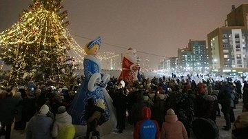 Особенностью главной елки в городке стало то, что ее украсили гирляндами и игрушками, сделанными своими руками малышами из детсадов и школьниками. Они также вложили тему знания и мудрости в свои творения.