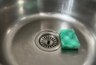 - С помощью губки равномерно распределите раствор на загрязненные поверхности раковины и смесителя.