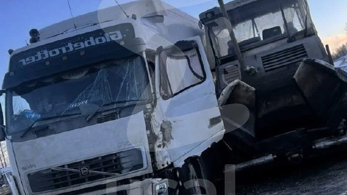 По данным телеграм-канала Ural Mash, асфальтоукладчик при перестроении столкнулся с фурой. К счастью, водители обеих машин не пострадали.