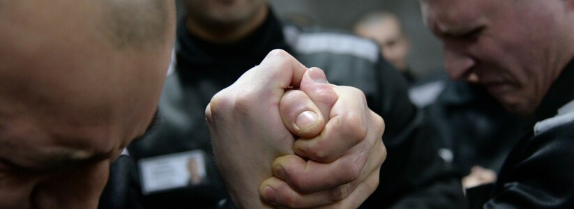 Заключенные исправительного учреждения отжимались на брусьях с грузом, состязались в армрестлинге, перетягивали канат, упражнялись на перекладине и играли в нарды.