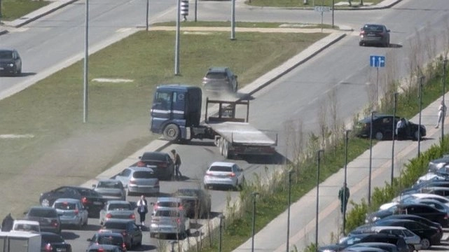 В результате происшествия пострадали несколько автомобилей, что привело к образованию огромной пробки.