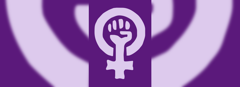 - Символ феминисток – сжатый кулак, который заключен в зеркало Венеры. Лиловый цвет, используемый на фоне, – традиционный цвет феминизма.