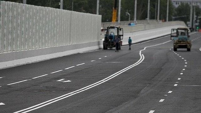 Эта инновационная технология будет использоваться для разделения потоков движения на дорогах с четырьмя и более полосами. В качестве материала для разметки используется термопластик.