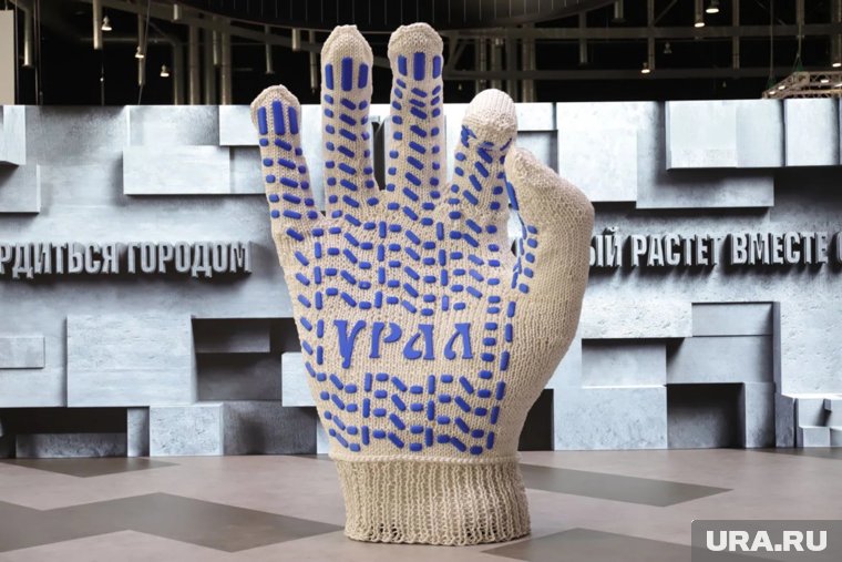 На международной выставке 100+ TechnoBuild в екатеринбургском «Экспо» представили необычный арт-объект — строительную перчатку человеческого роста, связанную вручную. Инсталляция создана уральским строительным холдингом «Атом» как символ признательности труду.
