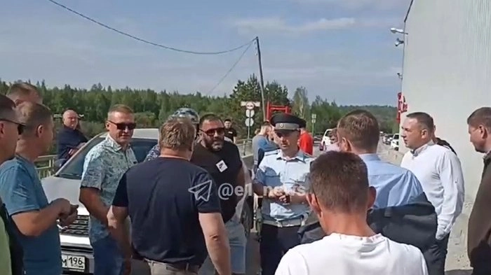 Около свердловского посёлка Сагра грузовики перекрыли дорогу из-за запрета на движение по дамбе, которую власти признали в неудовлетворительном состоянии.