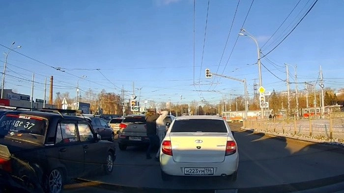 Драка была запечатлена видеорегистратором. На видео видно, как водитель «Лады» выходит из своего автомобиля прямо на проезжей части и бежит к впередистоящей машине. Вскоре к нему присоединяется второй водитель, который начинает толкать первого, что приводит к вспышке конфликта.