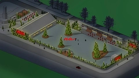 На территории катка установят фудкорт с пятью павильонами для продажи еды, два из которых разместят перед входом, а три — непосредственно на катке.