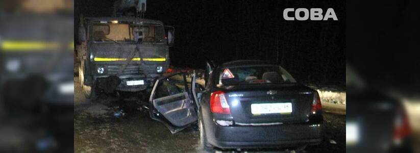 Авария произошла вечером 21 декабря. Водитель Chevrolet Lacetti не справился с управлением и врезался в КамАЗ, который ехал из Арамиля. Вызволять двух зажатых в иномарке людей пришлось спасателям. Пострадавших госпитализировали.
