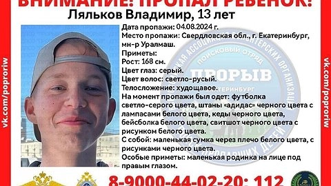 На Уралмаше третий день продолжаются поиски 13-летнего Владимира Лялькова, который пропал 4 августа.