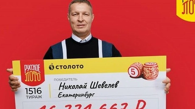Житель города Екатеринбурга, Николай Шевелев, стал обладателем миллионного состояния, выиграв крупную сумму в праздничном 1516-м тираже "Русского лото", посвященном дню рождения лотереи.