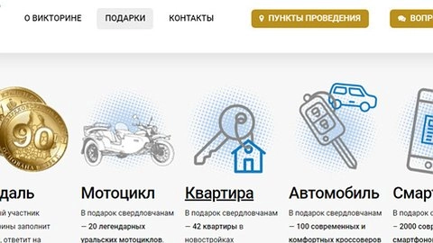 Викторина «Опорный край» проводилась с 15 по 18 марта, где уральцы могли выиграть 2000 смартфонов, 45 квартир, 100 автомобилей и 20 мотоциклов «Урал». Примечательно, что за два дня до окончания викторины были изменены условия получения подарков.