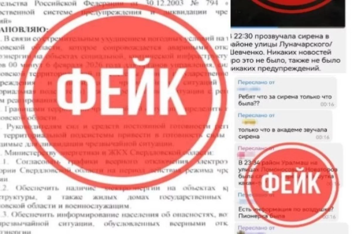 Как пояснили в Антитеррористической комиссии Свердловской области, с анонимных аккаунтов в интернете началась массовая рассылка фейков. В ход пошли не только текстовые сообщения о сиренах в разных районах города, но и специально сгенерированные аудиозаписи, видео и даже поддельный указ о введении чрезвычайного положения в регионе.