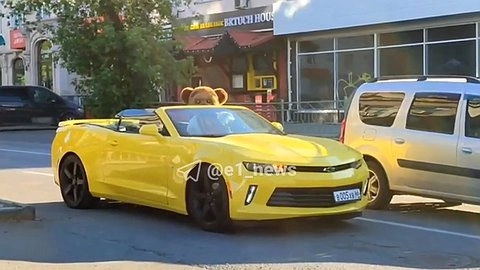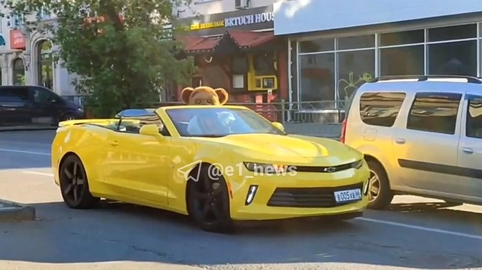 В Екатеринбурге был замечен кабриолет Chevrolet Camaro, за рулём которого находился медведь.