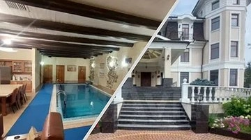 Объект расположен на обширном участке площадью один гектар и включает в себя: трехэтажный коттедж, оздоровительный комплекс с бассейном, а также двухэтажный жилой дом и гостевой дом.