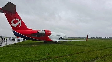 — На этапе пробега самолет выкатился за пределы взлетно-посадочной полосы на расстояние около 10 метров, — рассказали в пресс-службе.