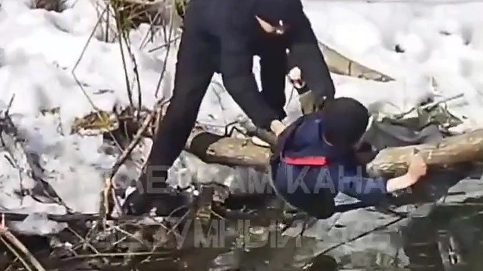 На записи видно, как мужчина схватил подростка за ноги и вытащил его к берегу.