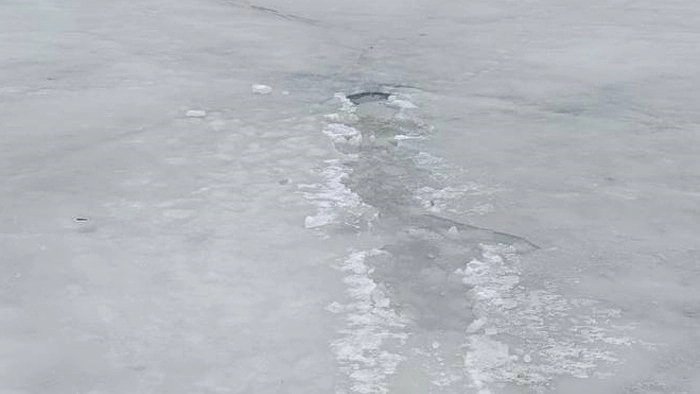 Лёд не выдержал веса автомобиля, и машина ушла под воду.