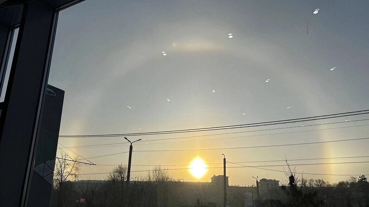 На Урале можно было увидеть редкую картину: на небе светило не одно, а будто два или три солнца. На самом деле это было красивое атмосферное явление — гало. Оно выглядит как светящееся кольцо вокруг солнца, а иногда рядом появляются яркие пятна, похожие на дополнительные светила.