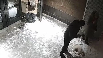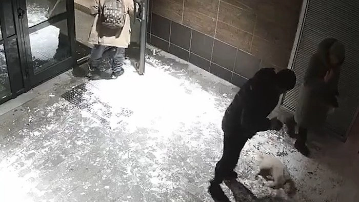 Один из местных жителей ударил щенка по голове прямо в лифте, а во время прогулок регулярно таскает его на поводке, пинает и бьёт.