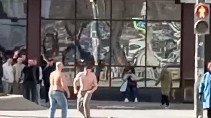 13 апреля в Екатеринбурге, возле ресторана «Бургер Кинг» на пересечении улиц Малышева и 8 Марта, произошла необычная драка между двумя полуголыми мужчинами.