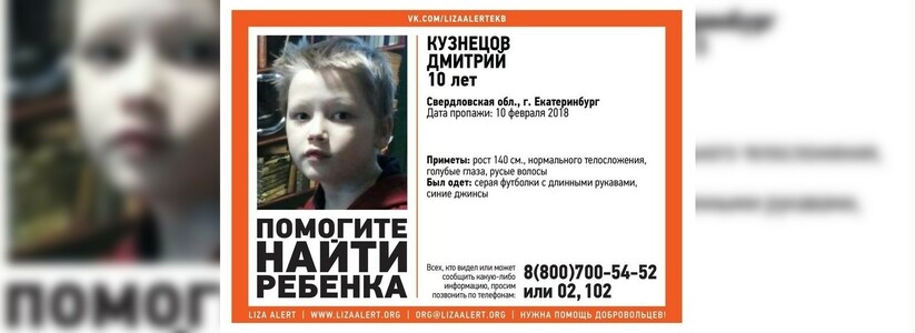 В Екатеринбурге ищут 10-летнего Диму Кузнецова, сообщили в поисково-спасательном отряде "Лиза Алерт".