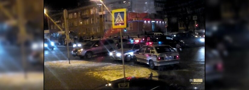 На Уралмаше произошло массовое ДТП на трамвайных путях: на перекрестке улиц Бакинских Комиссаров и Кировградской столкнулись Mazda, Subaru и Nissan.