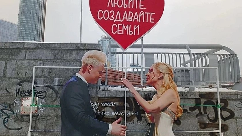 Эта инсталляция появилась в Екатеринбурге 13 марта. Над парой висело сердце с надписью: «Любите. Создавайте семьи». Спустя несколько дней Мизулина опубликовала в своем Telegram-канале видео, на котором молодой человек делает предложение руки и сердца на фоне композиции.
