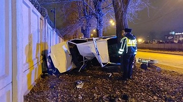 По предварительной информации, водитель выбрал небезопасную скорость движения, не справился с управлением и допустил столкновение. После удара автомобиль занесло, в результате чего он совершил наезд на бетонное ограждение и опрокинулся.