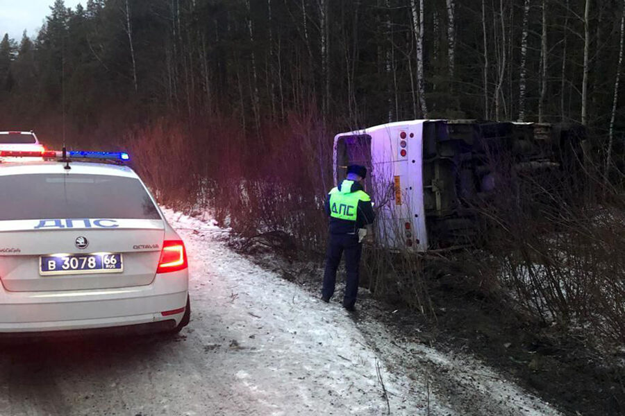 Серьезное дорожное происшествие с участием рейсового автобуса произошло сегодня на трассе Первоуральск — Кузино. По предварительной информации регионального управления ГИБДД, транспортное средство марки ПАЗ съехало с дорожного полотна и опрокинулось на обочине.