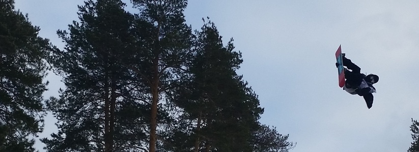 На горнолыжном курорте «Уктус» проходит зрелищное мероприятие – соревнования и показательные выступления лыжников и сноубордистов. Для них организаторы соорудили большой трамплин, с которого спортсмены совершают головокружительные прыжки.