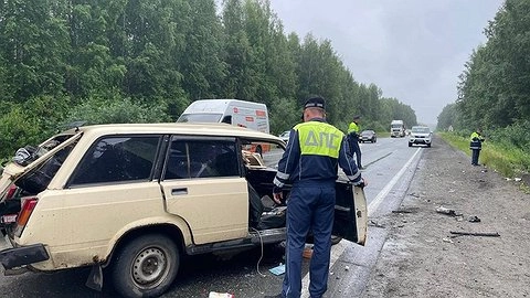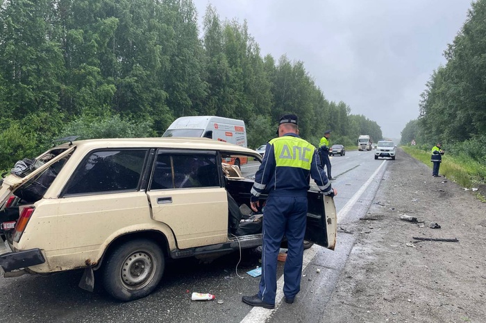 По данным Госавтоинспекции по Свердловской области, водитель легкового автомобиля ВАЗ-2104, мужчина 1971 года рождения, двигаясь в направлении Екатеринбурга, выехал на встречную полосу и столкнулся с микроавтобусом Toyota Hiace под управлением мужчины 1959 года рождения.