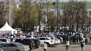 Сотни екатеринбуржцев вышли с флагами на площадь 1905 года. По центральной улице города проехали военная техника и колонна из авто. И все это, чтобы отпраздновать день рождения Владимира Путина.